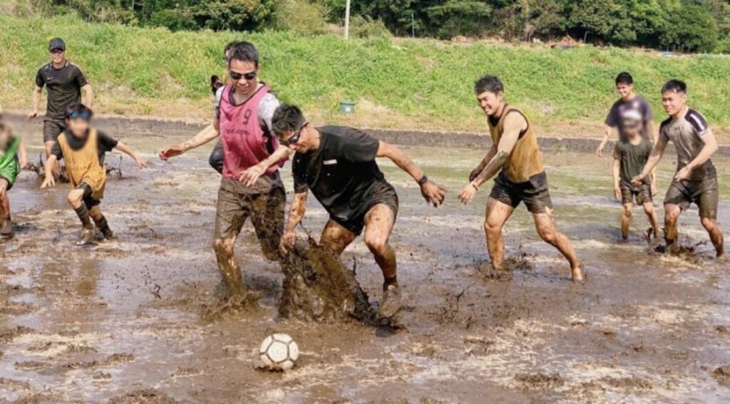 今回はお水を張らない「田んぼサッカー」を企画しています!