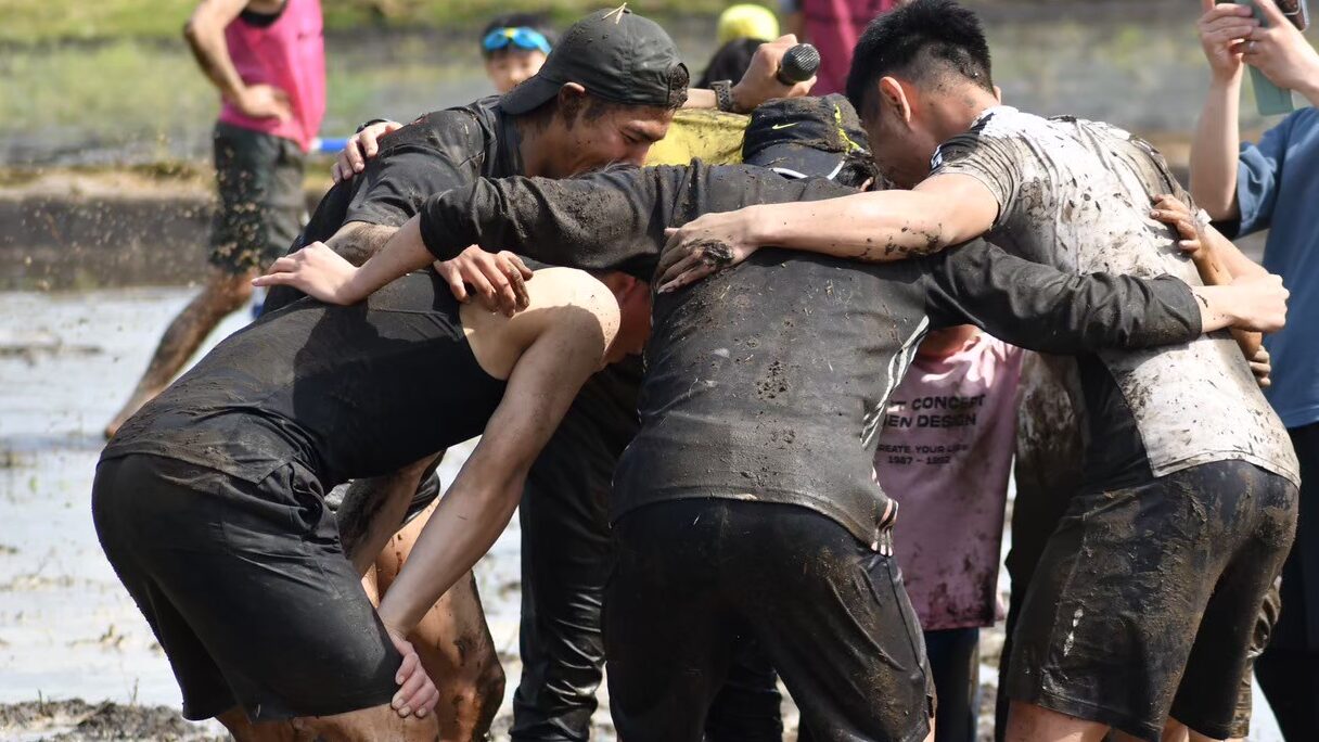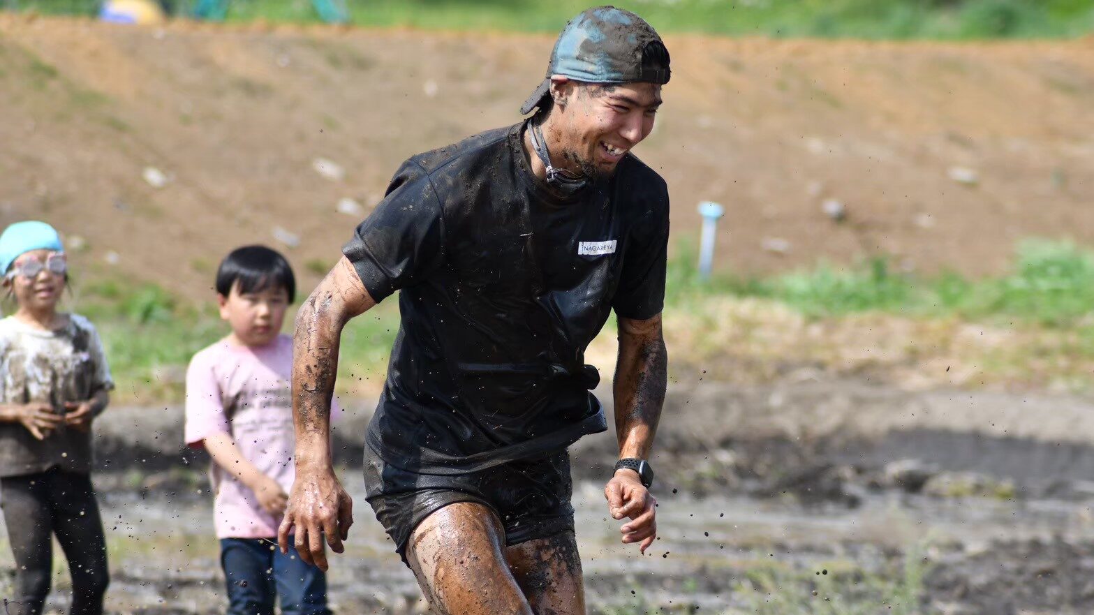 泥んこの中で障害物競走。よーいどん!